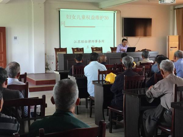 讲座邀请了江苏联佑律师事务所的王翔律师为广大妇女同胞宣传法律知识,他根据《宪法》、《婚姻法》、《中华人民共和国妇女权益保障法》、《反家庭暴力法》等相关法律条文,充分结合经典案例的方式,切实帮助老人、妇女、儿童如何运用法律知识解决家庭生活中的问题,提高妇女同胞的自我保护意识,维护好自己的家庭。会后,还有村民主动向王律师咨询家中法律问题,王律师耐心倾听并作出解答,村民表示非常满意。